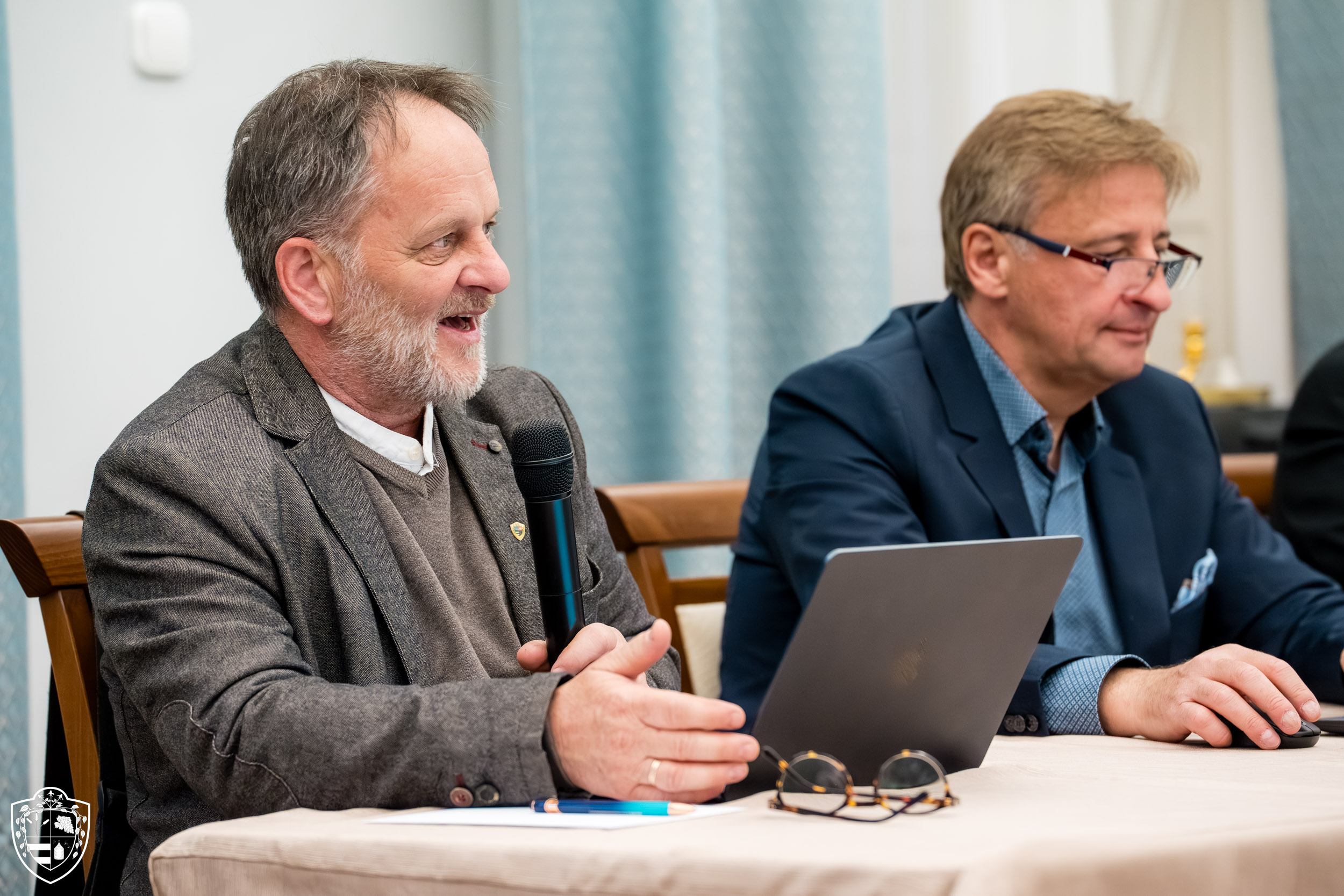 Hajdu Zsolt, az Oktatási, Művelődési és Sport Bizottság elnöke a civil szervezetek pályázatáról beszél az ülésen. Jobbról Kenéz István képviselő
