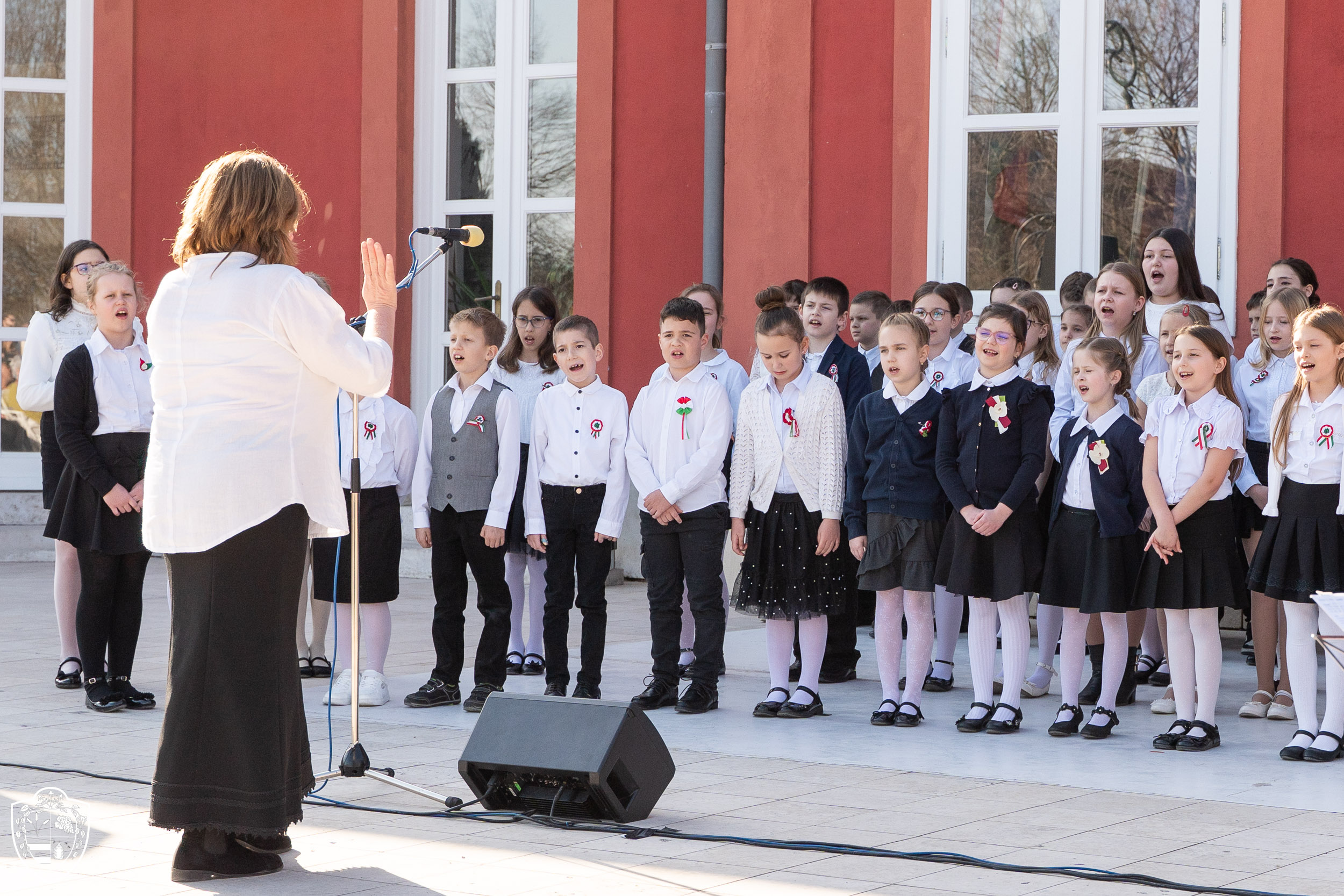 A II. Rákóczi Ferenc Általános Iskola diákjai adták az ünnepi műsort a szobornál. Elsőként erdélyi magyar népdalt hallhattunk Lányi Viktóriától, felkészítő tanára Gondos Brigitta volt. Tasi Liza a Nemzeti Dalt szavalta el, felkészítő tanárként Ficzere Noémi működött közre.